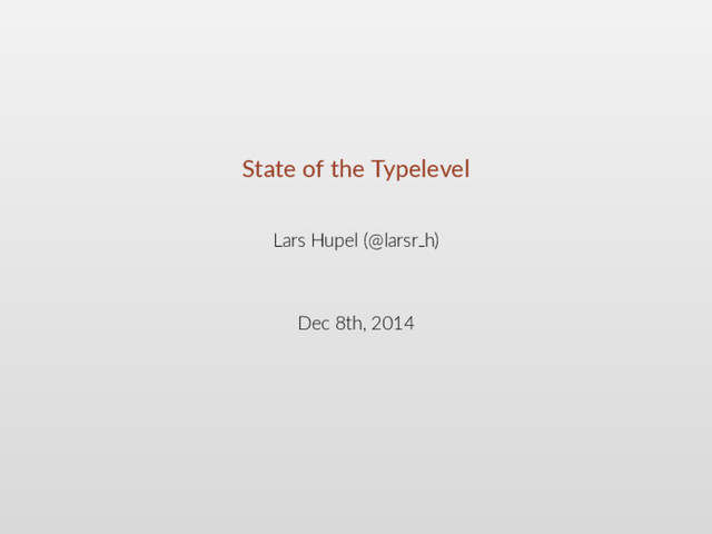 This talk will give a whirlwind tour of the ideas and projects behind typelevel, and how they can be used to improve your code base. We'll see some short examples of how to solve problems in a functional manner, and demonstrate some of the tooling around the libraries. Also, a critical review of the progress and an outline of the future plans of the projects will be made.