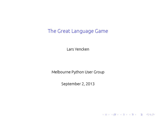 A brief introduction to the Great Language Game, given to the Melbourne Python User Group.