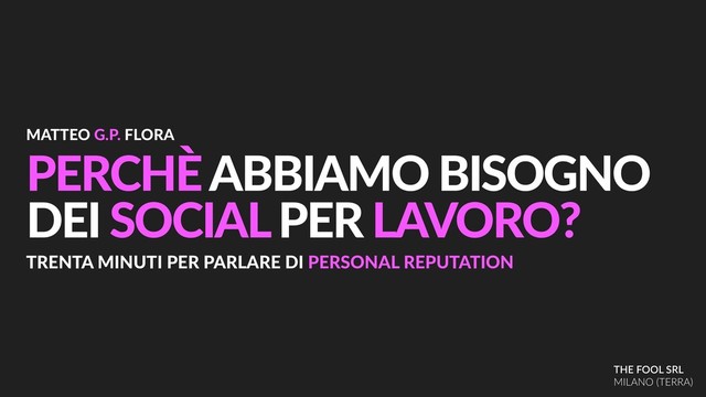 Fondatore di The Fool + LT42 #IVLP alumni, Buddhist, (H)activist. Vegan. Nerd. Ma eo Flora Ciao, Internet! Leader nell’Analisi, Gestione, Tutela e Strategia della Reputazione e degli Asset Digitali.