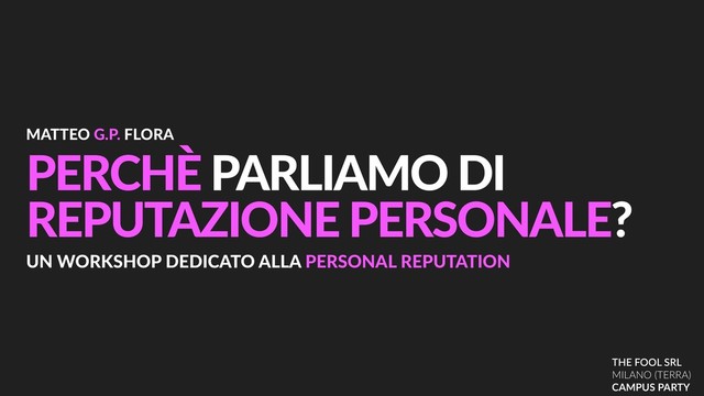 Queste le slide del Workshop che Matteo Flora, CEO di The Fool la Società di Reputazione Online italiana, ha tenuto in occasione di Campus Party 2018 a Milano