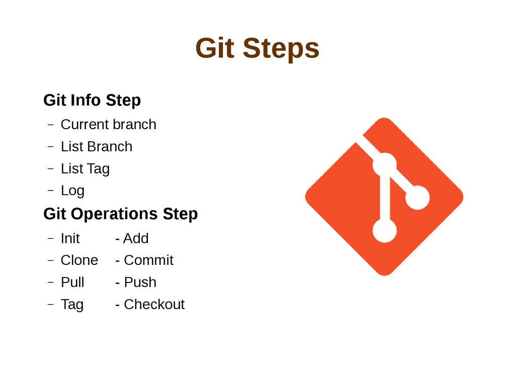 List Tag – Log Git Operations Step – Init - Add – Clone - Commit – Pull - Push – Tag - Checkout Git Steps