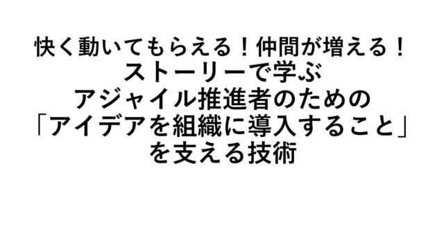 快く動いてもらえる!仲間が増える! ストーリーで学ぶアジャイル推進者のための「アイデアを...