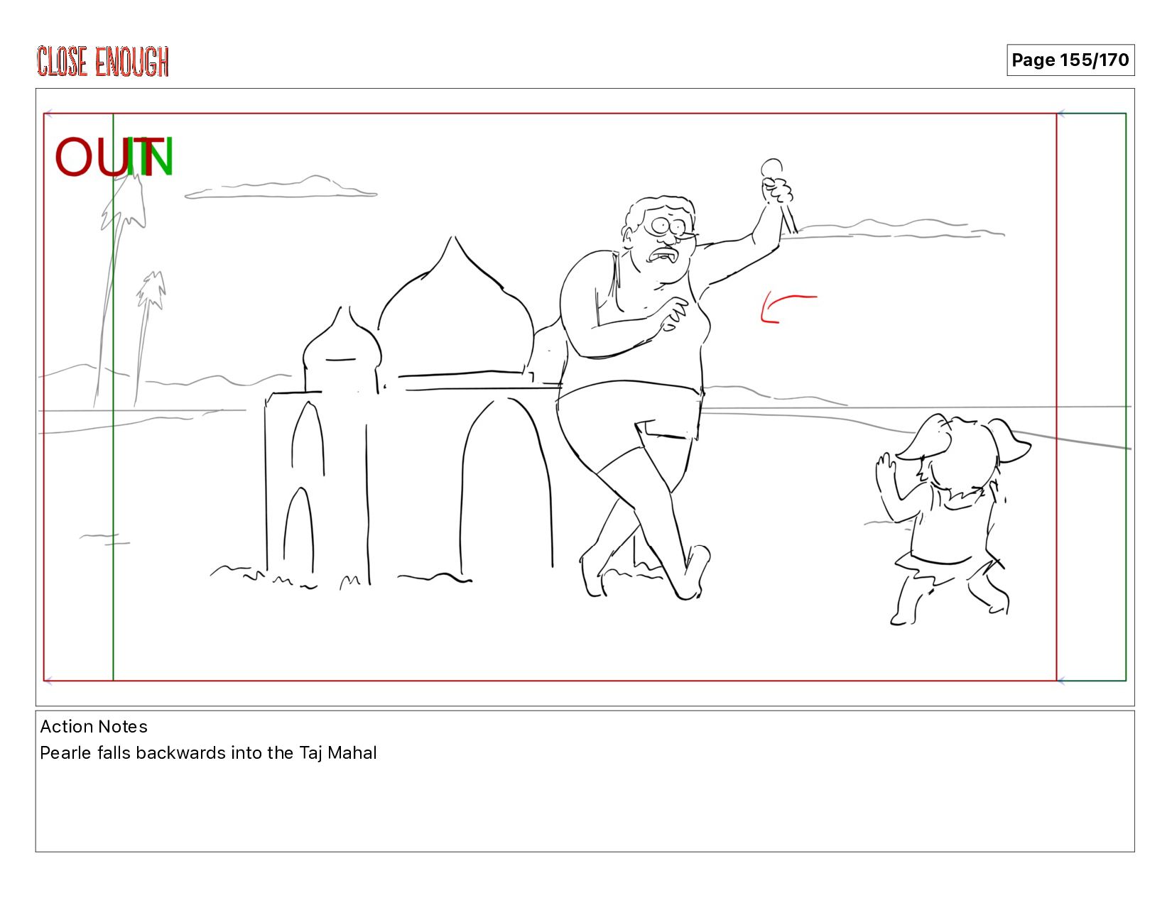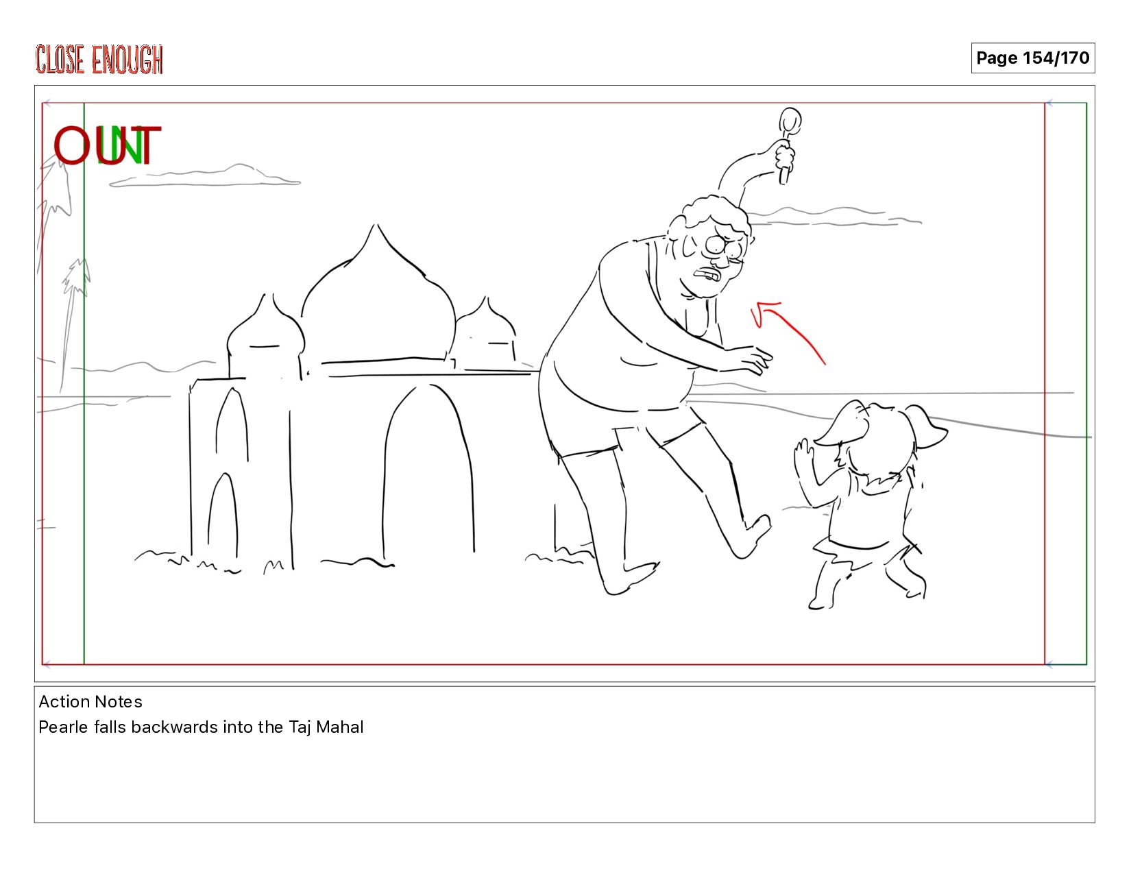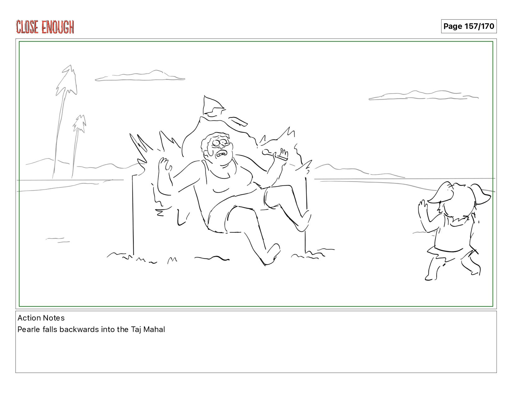 Action Notes Pearle falls backwards into the Taj Mahal Page