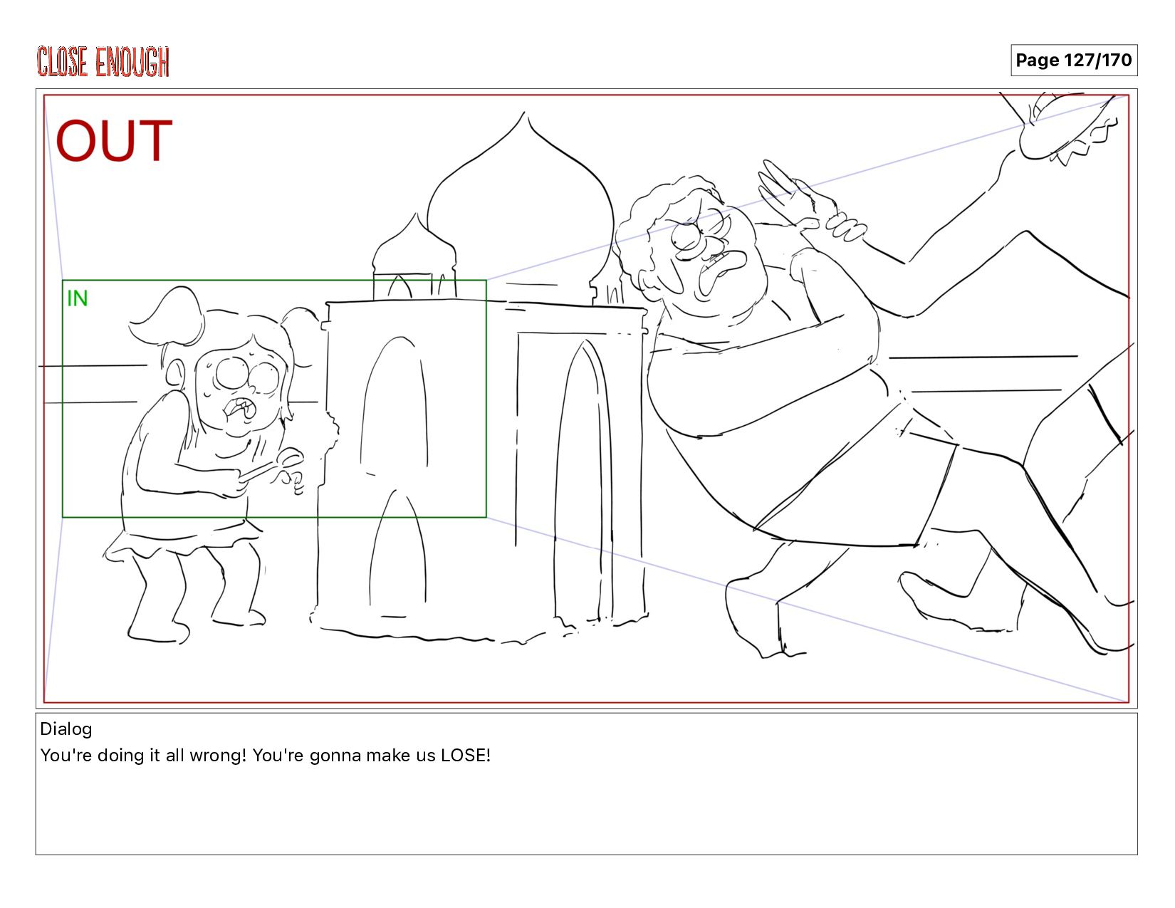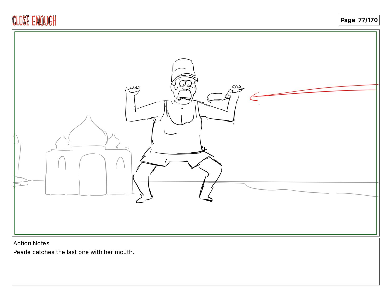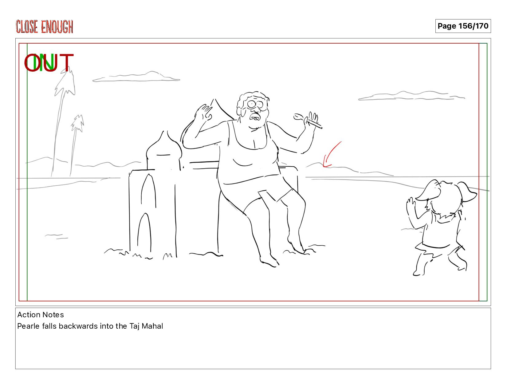 Action Notes Pearle falls backwards into the Taj Mahal Page