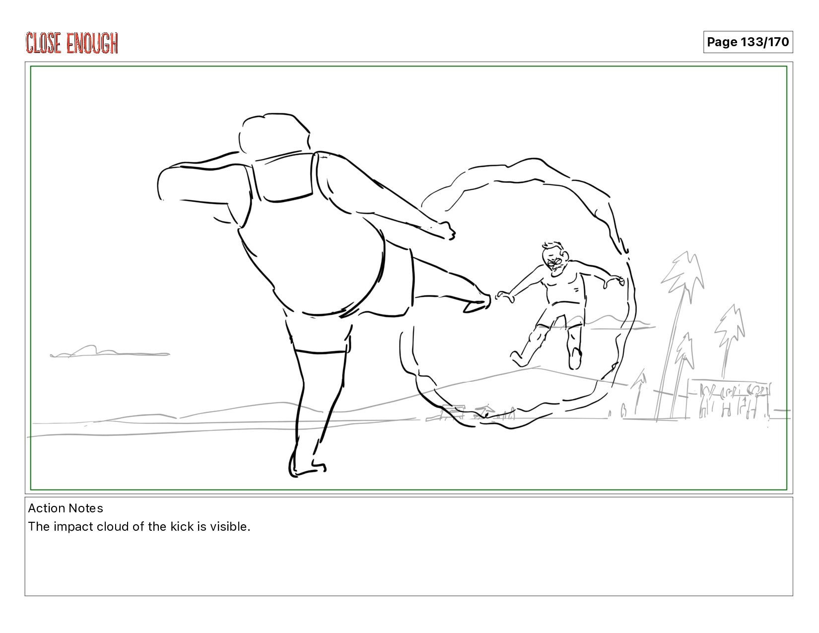 Action Notes The impact cloud of the kick is visible.