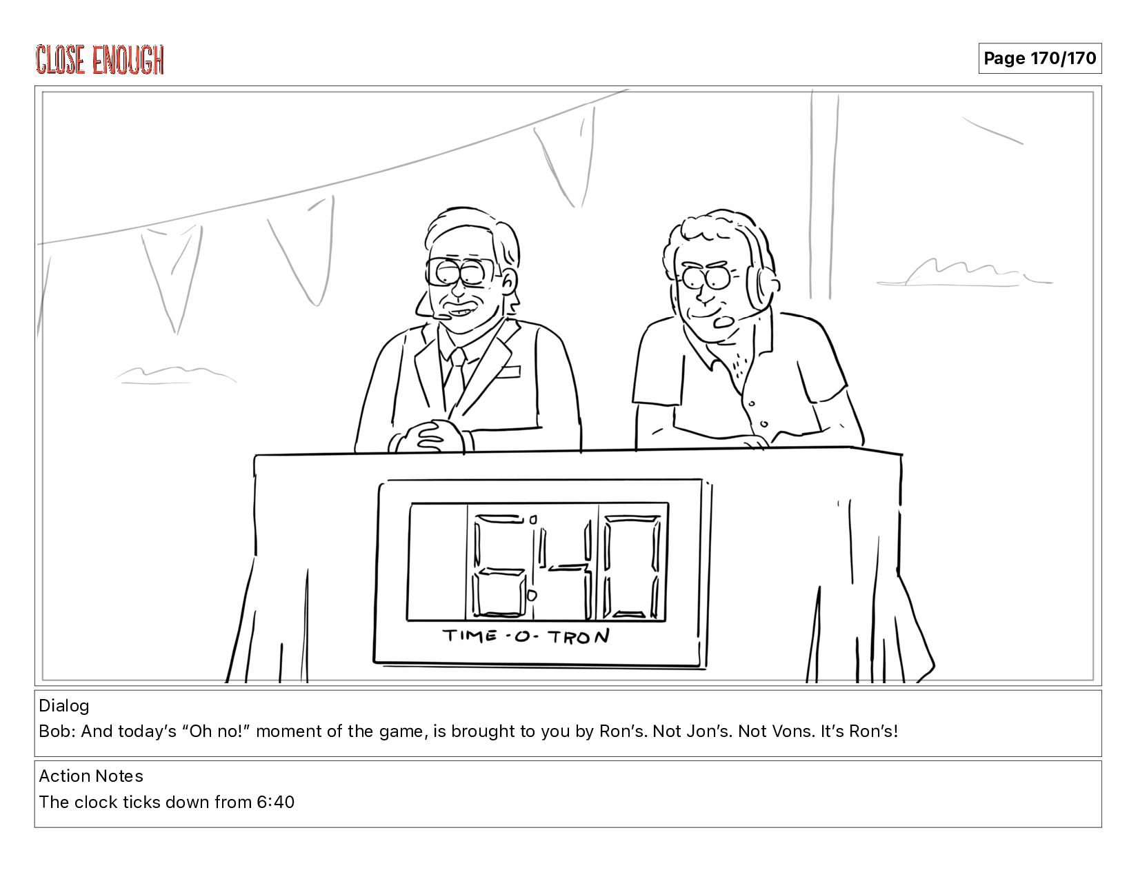 is brought to you by Ronʼs. Not Jonʼs. Not Vons. Itʼs Ronʼs! Action Notes The clock ticks down from 6 40 Page 170/170
