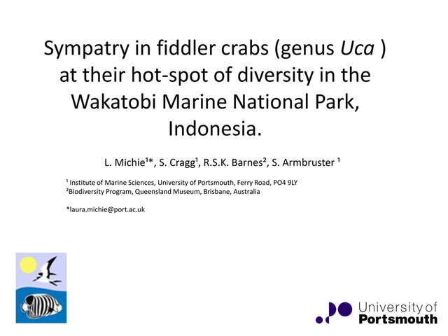 of diversity in the Wakatobi Marine National Park, Indonesia. L. Michie¹*, S. Cragg¹, R.S.K. Barnes², S. Armbruster ¹ ¹ Institute of Marine Sciences, University of Portsmouth, Ferry Road, PO4 9LY ²Biodiversity Program, Queensland Museum, Brisbane, Australia *[email protected]