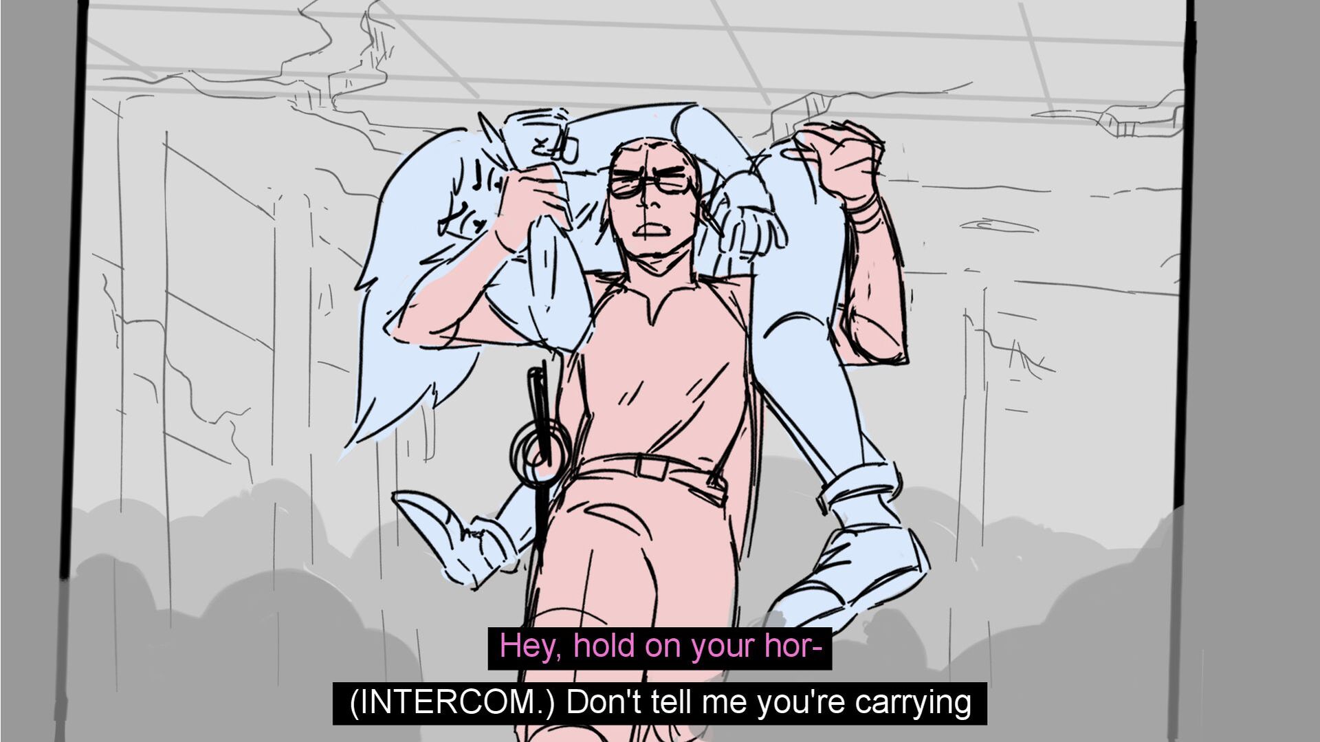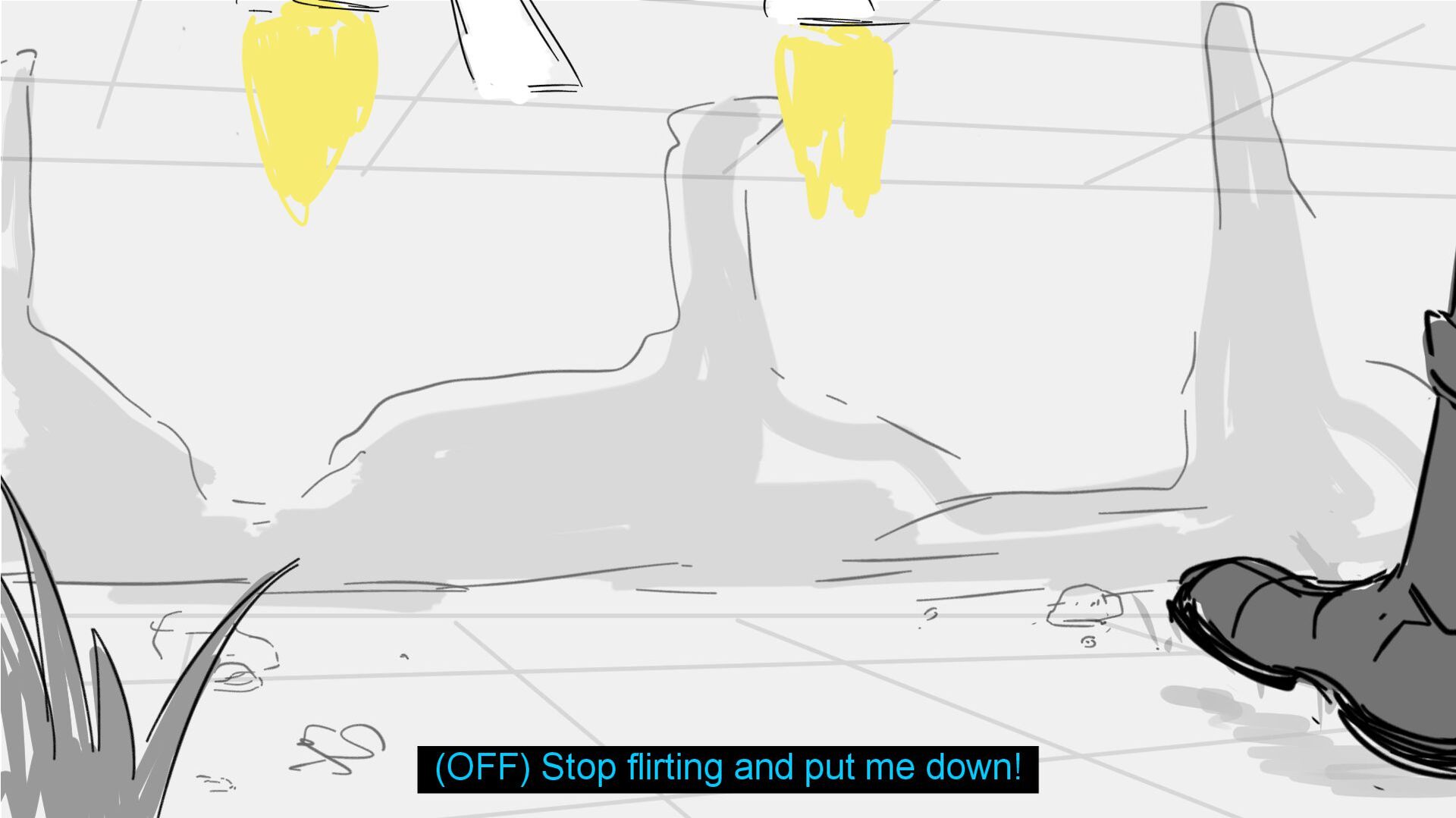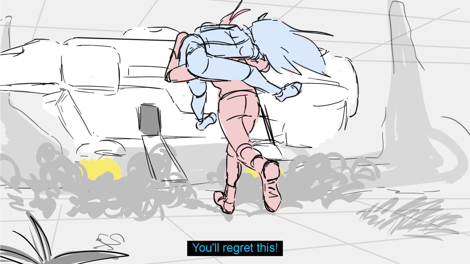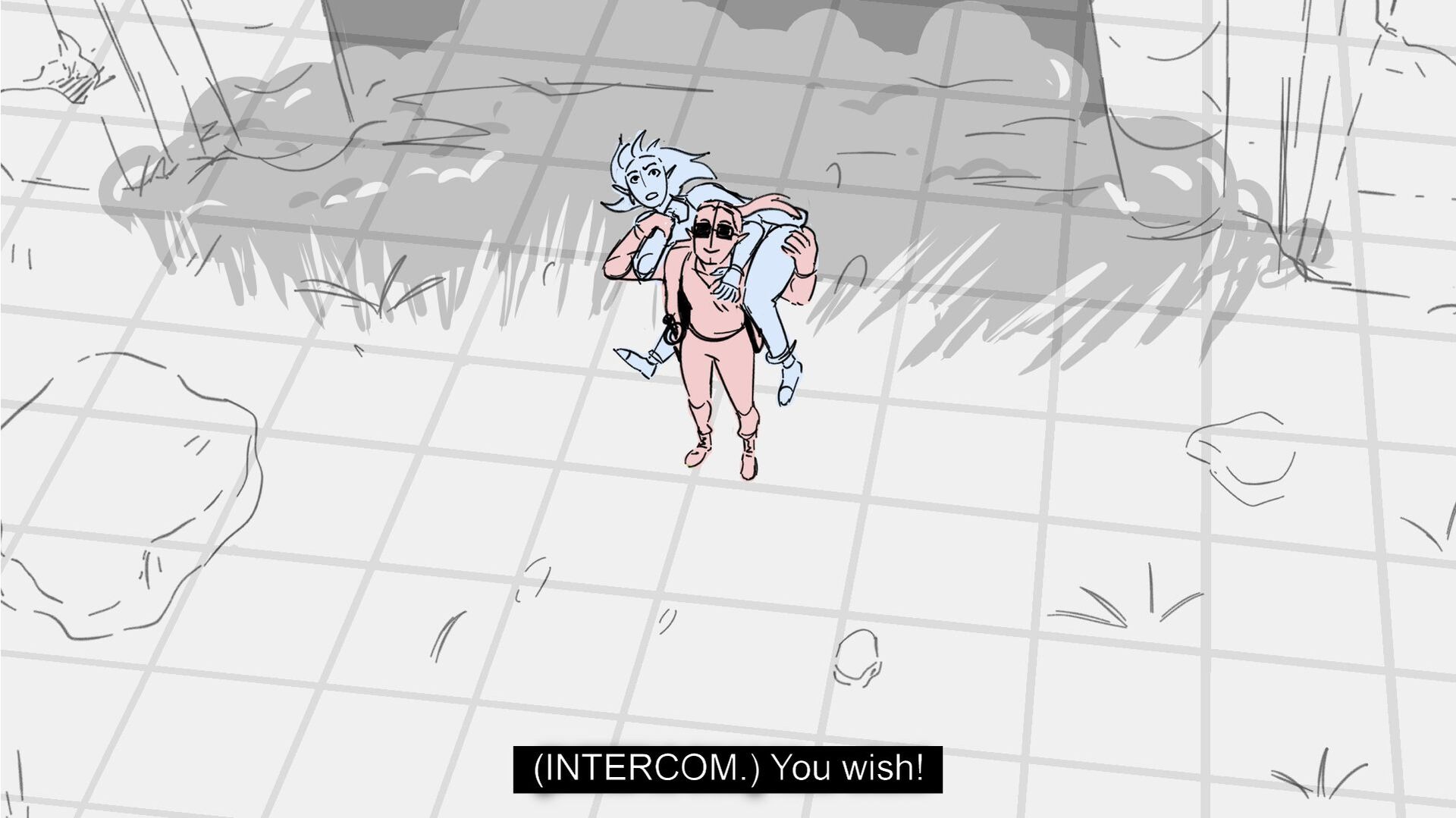 In the falling ruins in the desert, princess Alcione and her guard Sinistra won't agree on leaving or staying. When they were about to leave and Sinistra's girlfriend had gone to retrieve their spaceship, while Alcione's girlfriend Artemis had decided to get back into the building.