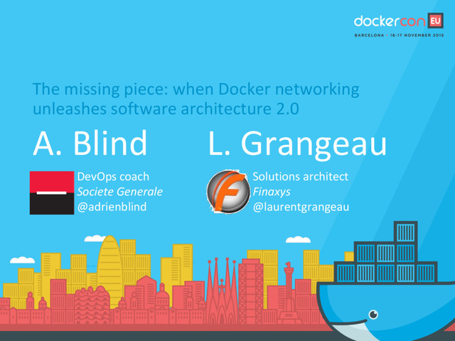 registry where a desired micro-service is located Inside a micro-service, NGINX is made aware of the backend API instances available, via the registry At container level, the registrator enable to registers any container instances, grouped per type At infrastructure level, the registry is used by swarm (internally) to be aware of the cluster’s participants Noticed the different usages of a registry ? You may consider using different registries for each usage : for example an internal registry for the micro service internal topology