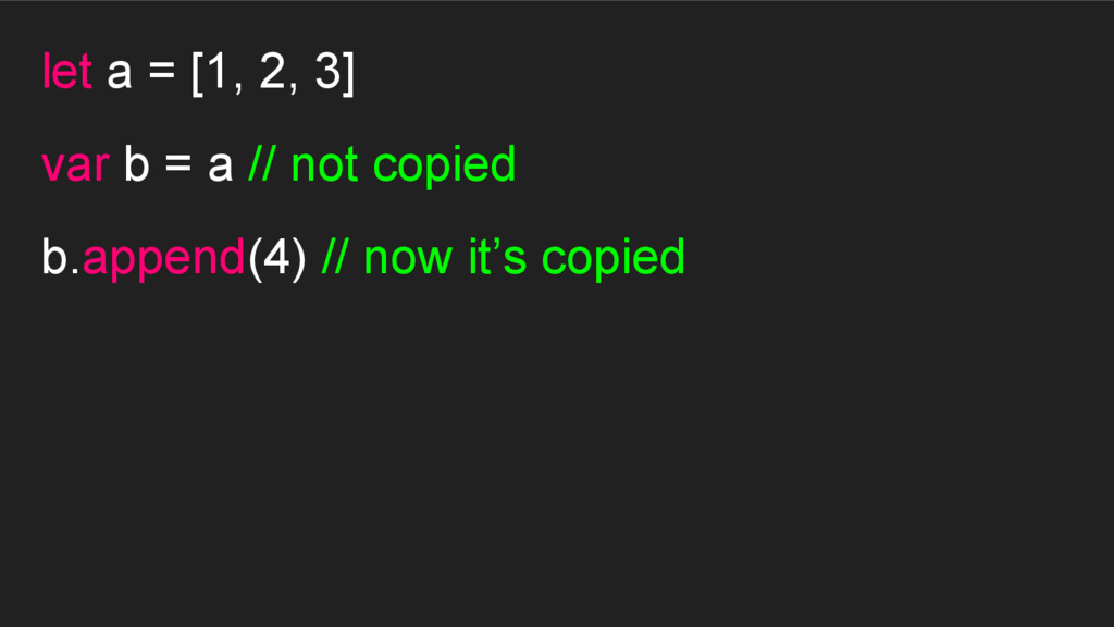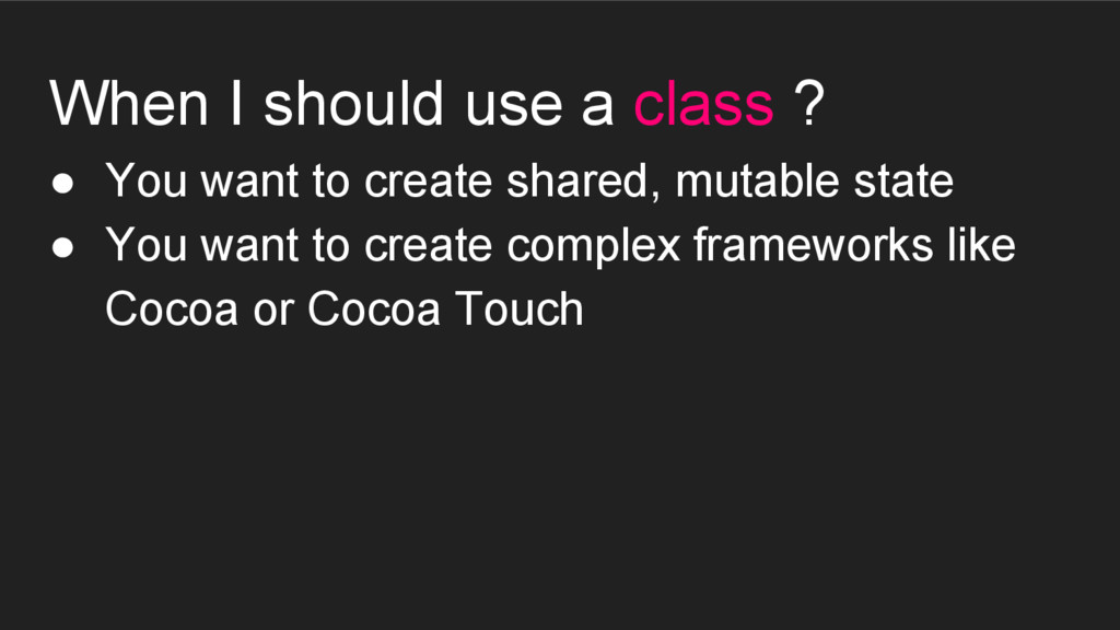 This topic it is a comparison between structs and classes in Swift, it also presents why you should adopt structs, because coming from Objective-C you are tended to use classes all over the code without having any benefit of Swift features.