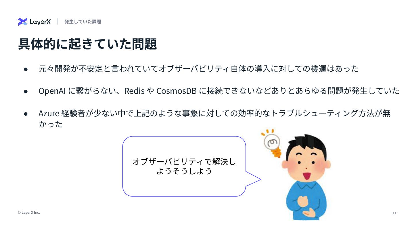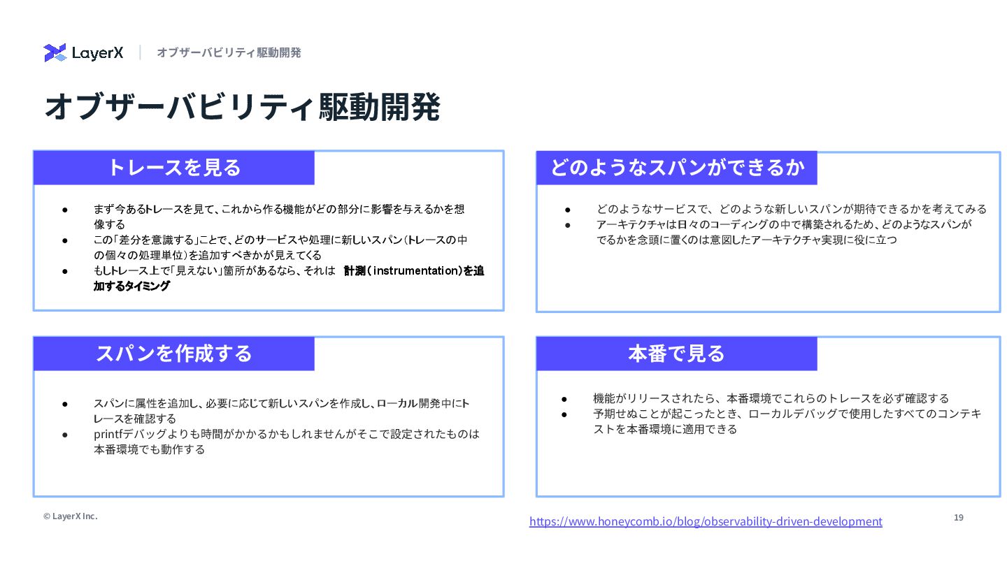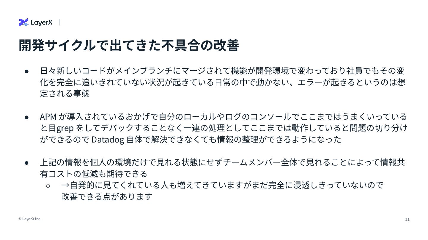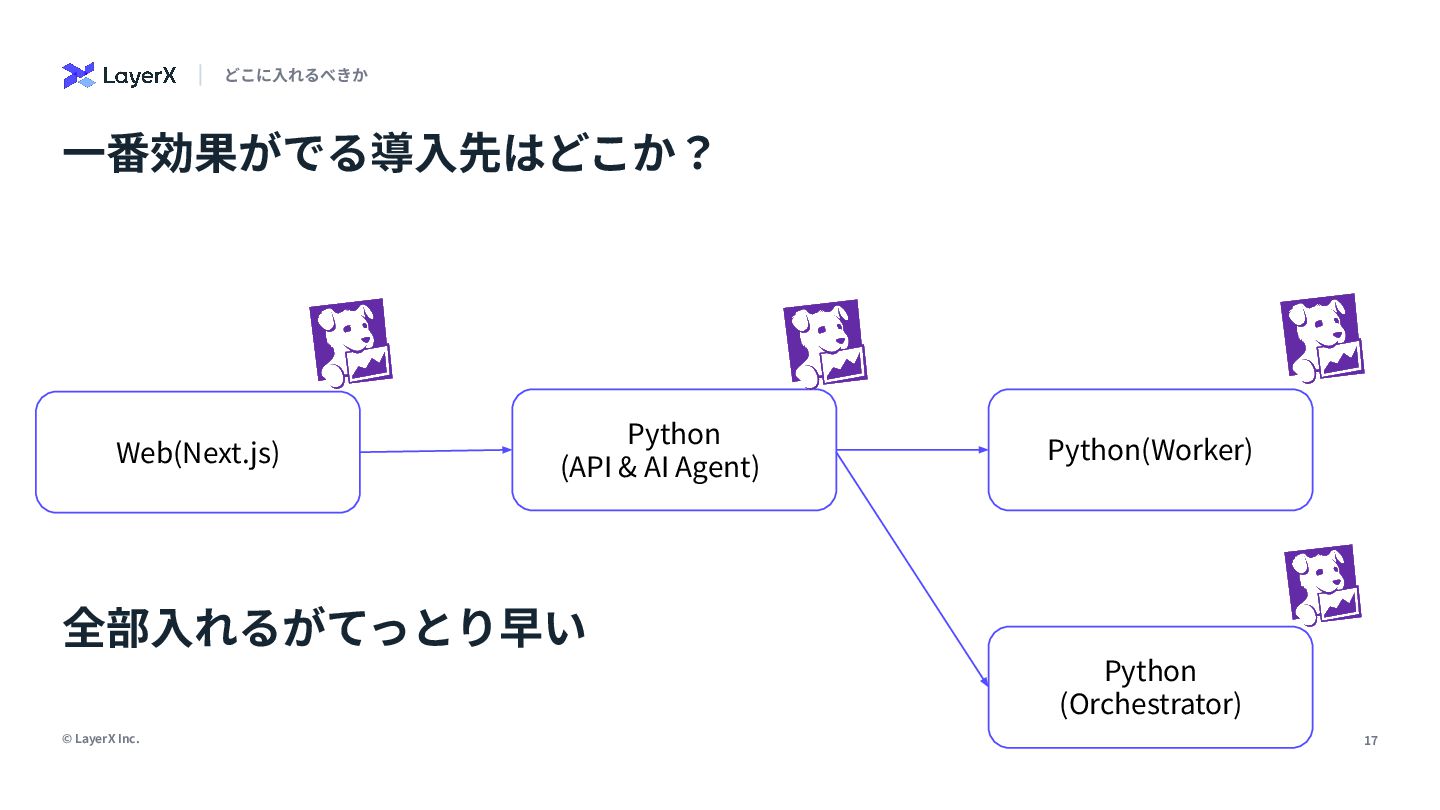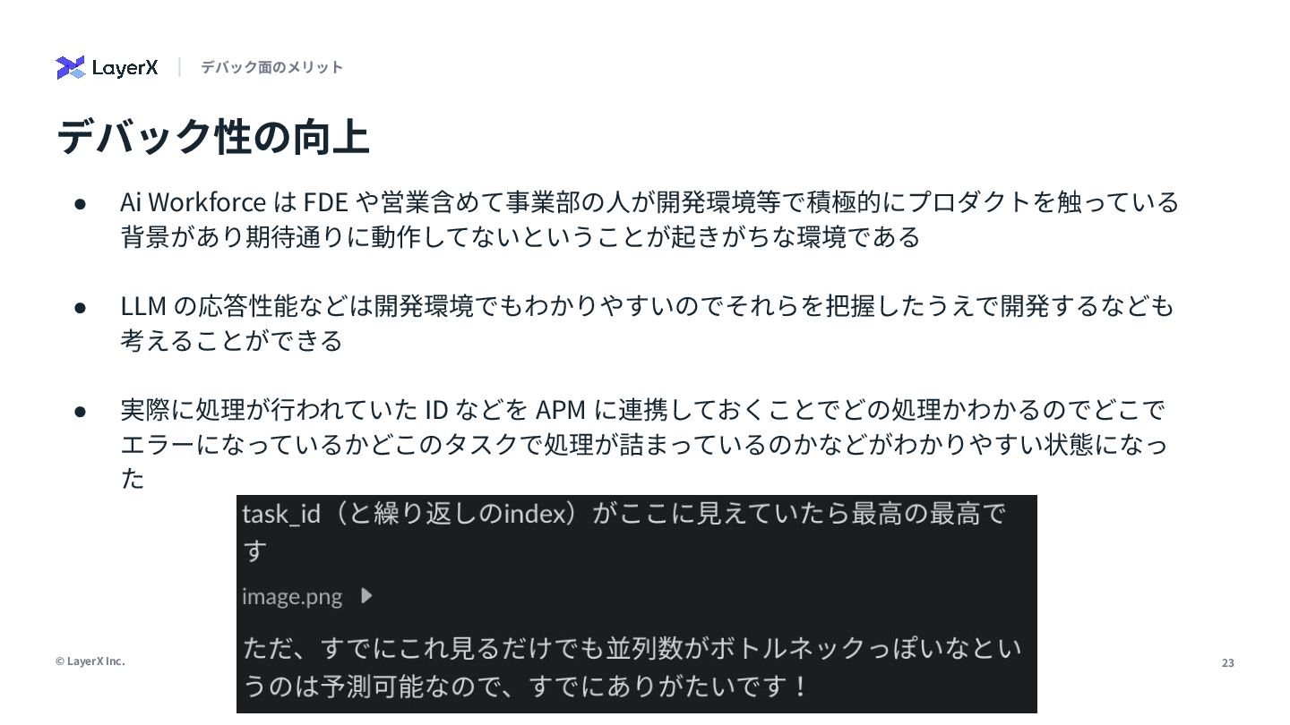 「本番環境のオブザーバビリティは大事」。誰もがそう言います。でも、日々の開発で「なんでこれ動かないんだ…」と途方に暮れた経験はありませんか?私たちは、開発環境こそオブザーバビリティ導入の第一歩だと信じ、私の所属するLayerXのAI・LLM事業部でその実践に挑んできました。