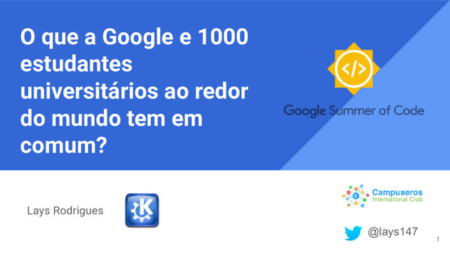 Esta palestra tem por objetivo apresentar o Google Summer of Code, um dos programas da Google para universitários ao redor do mundo, que tem como um dos objetivos de manter o Open Source/Software Livre vivo e treinar suas habilidades de programação. E que ainda te proporciona a chance de receber até 4,200 dólares. Mostrarei a minha experiência em participar desse programa, o que eu aprendi e o que você precisa fazer para participar!