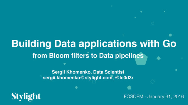 Many people use Go for different projects: WebDev, DevOps or other general-purpose tasks. On another hand, with all the beauty and performance of the language it could be a good challenger for Data applications. In the talk, we will go through the common problems of Data Engineering. Starting with high-performance caching and probabilistic data structures like Bloom filters, CountMin or Hyperloglog. We will cover all stages of Data Pipelining like writing data producers for open source Apache Kafka or proprietary Amazon Kinesis or Google Pub/Sub with further data consuming and processing.