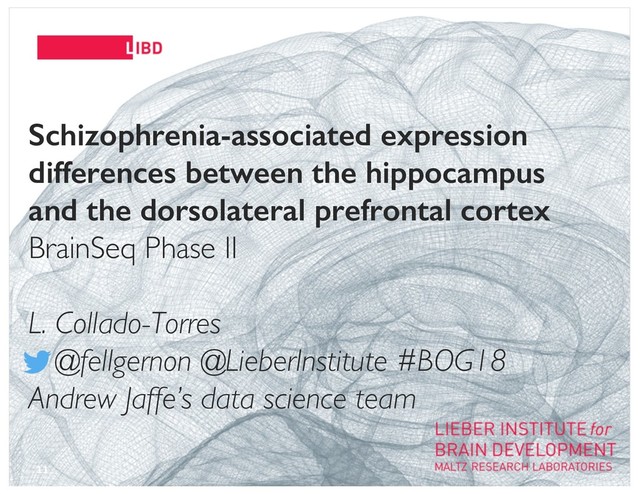 [email protected] o @andrewjaffe 35 • BrainSeq Consortium • LIBD @lieberinstitute More from our team at #BOG18: • Poster 48 by Emily E. Burke, Wed 2pm • Poster 251 by Stephen A. Semick, Fri 2pm Funding We are hiring! Multiple positions open