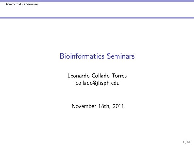 blue point? > plot(c(1, 2), c(1, 2), pch = 16, + col = c("blue", "red"), xlab = "Time", + ylab = "Some measured units", + ylim = c(0.8, 2)) > points(1.5, 1.5, col = "orange", + pch = 16) > points(1.2, 1.8, col = "purple", + pch = 16) > points(1.7, 0.9, col = "forest green", + pch = 16) > abline(0, 1, lty = 3) 8 / 61