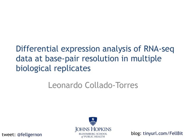 = 0 s(l) = statistic for location l • HMM with three states D(l) = hidden state at location l D(l) = 0 if α(l) = β(l) = 0 (no expression) D(l) = 1 if α(l) ≠ 0 and β(l) = 0 (expressed, but no group difference) D(l) = 2 if β(l) ≠ 0 (group difference!) • Assume statistics conditional on state is Normal s(l)|D(l) = d ~ (µd ,σd 2) f0 : µ0 =0, σ0 2=ε f1 : µ1 =0, σ1 2 f2 : µ2 , σ2 2 • Estimate parameters using a mixture model t ~ π0 f0 + π1 f1 + π2 f2 Frazee et al. Biostatistics in review Adapted from @leekgroup