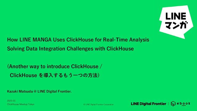 LINE MANGA relies on numerous MySQL servers, but faced challenges with real-time analysis. Before introducing ClickHouse, we relied on custom scripts for each analysis. This approach was difficult to develop and review, and execution was slow. In theory, almost all such tasks can be done with simple SQL, which could be naturally parallelized by the query engine. However, due to our vertical and horizontal sharding, this method became impossible. ClickHouse’s integration engine resolves this issue. It allows data stored in different MySQL locations to be joined and aggregated with simple SQL. We believe this will serve as a helpful reference for improving the developer experience, as well as a good first step towards implementing ClickHouse.
