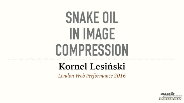 Well compressed images are necessary for good website performance. There are lots of tools and image formats that promise improving performance, but which ones are really the best? I'm going to present best practices for lossy compression, and — in a meta twist — I'll show you tools that you can use to evaluate performance of tools for image performance. All that so you can make your images have higher quality *and* load faster at the same time.
