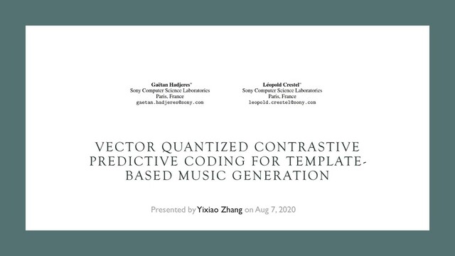 VECTOR QUANTIZED CONTRASTIVE PREDICTIVE CODING FOR TEMPLATE- BASED MUSIC GENERATION