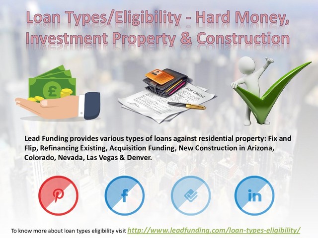 Fix and Flip, Refinancing Existing, Acquisition Funding, New Construction in Arizona, Colorado, Nevada, Las Vegas & Denver. To know more about loan types eligibility visit http://www.leadfunding.com/loan-types-eligibility/