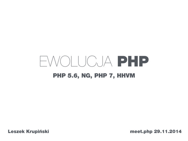 EWOLUCJA PHP PHP 5.6, NG, PHP 7, HHVM Leszek Krupiński
