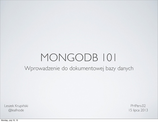 MONGODB 101 Wprowadzenie do dokumentowej bazy danych PHPers.02 15 lipca
