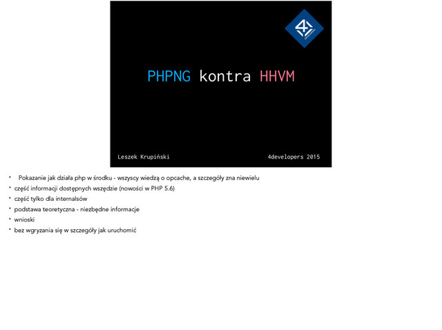 6. amazon.com 7. wikipedia.org 8. twitter.com 9. taobao.com 10. qq.com * system problematyczny * trudna kompilacja, małe wsparcie, małe rozpowszechnienie * możliwe niekompatybilności * wykrzacza się * do testów, lokalnie - jak najbardziej * nie każdy ma team programistów gotowych do poprawiania core hacka jak się coś schrzani * HHVM jest wątkowany - wspólne środowisko (setlocale) * faktyczne zalety w bardzo niewielkim procencie zastosowań