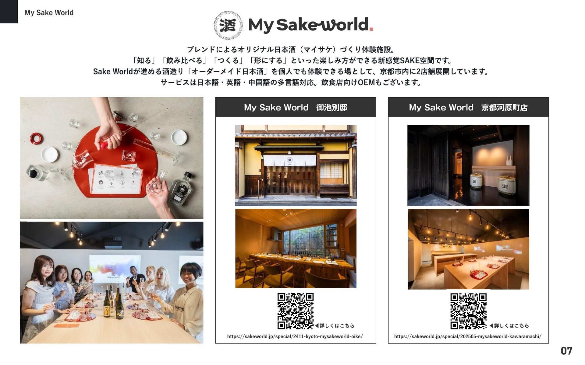 Sake World 京都河原町店 My Sake World 御池別邸 https://sakeworld.jp/special/2411-kyoto-mysakeworld-oike/ https://sakeworld.jp/special/202505-mysakeworld-kawaramachi/ ◀詳しくはこちら ◀詳しくはこちら