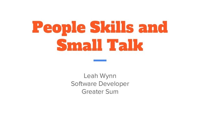 Most people have a fear of speaking to others in some capacity, but typically the thought of talking to people is worse than the reality. This talk offers reasons why the benefits of talking to others outweigh the risk, as well as, techniques to make comfortable small talk with strangers.