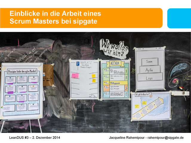 Welcome-Talk von Jacqueline auf der Lean DUS vom 2. Dezember 2014: Was macht ein Scrum Master? Wie sieht ein typischer Arbeitstag eines Scrum Masters bei sipgate aus?