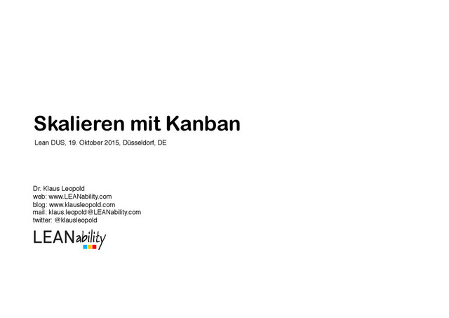 In diesem Vortrag zeigt Klaus Leopold, wie Kanban skaliert. Er zeigt auch ein Fallbeispiel, in dem Kanban in einem Kontext von über 200 Personen eingesetzt wird, ganz ohne irgendwelchen Skalierungs-Vodoo. Man muss einfach nur „richtiges” Kanban machen.