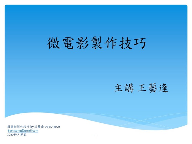 劇情片微電影編劇 微電影製作技巧 by 王藝逢 0931713070