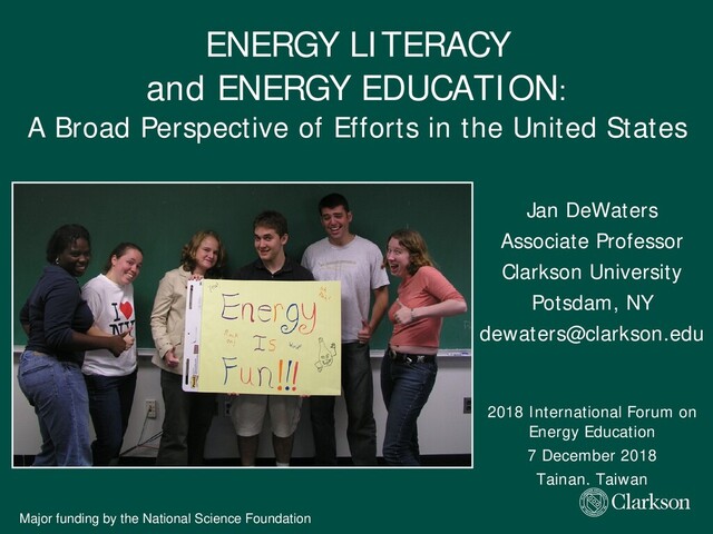 A theoretical analysis and review of empirical research. Psychological Bulletin, 84, 888-918. Attari, S. Z., DeKay, M. L., Davidson, C. I., & Bruine de Bruin, W. (2010). Public perceptions of energy consumption and savings. Proceedings of the National Academy of Sciences, 107(37), 16054-16059 DeWaters, J.E., & Powers, S.E. (2011a). Energy literacy of secondary students in New York State (USA): A measure of knowledge, affect, and behavior. Energy Policy, 39(3), 1699-1710. DeWaters, J.E., and S.E. Powers (2011b) Improving Energy Literacy among Middle School Youth with Project-based Learning Pedagogies. In Proceedings of the 41st ASEE/IEE Frontiers in Education Conference, Rapid City, SD, October 13-15, 2011, paper number 1424. Hines, J.M., Hungerford, H., & Tomera, A. (1987). Analysis and synthesis of research on responsible environmental behavior. Journal of Environmental Education, 19, 1-8. NEETF. (2002). Americans' Low "Energy IQ:" A Risk to Our Energy Future/Why America Needs a Refresher Course on Energy. Washington, DC: National Environmental Education & Training Foundation. Southwell, B.G., J.J. Murphy, J.E. DeWaters, P.A. LeBaron, “American’s perceived and actual understanding of energy.” Research Triangle Park, NC: RTI Press (2012). www.rti.org/rtipress. Southwell, B.G., J.J. Murphy, J.E. DeWaters, P.A. LeBaron, J. Willoughby, “Energy information sharing in social networks: The roles of objective knowledge and perceived understanding.” The Journal of Sustainability Education, June 24th, 2014. Sovacool, B., 2009a. The cultural barriers to renewable energy and energy efficiency in the United States. Technology in Society 31, 365-373. Sovacool, B., 2009b. Rejecting renewables: The socio-technical impediments to renewable electricity in the United States. Energy Policy 37, 4500-4513.