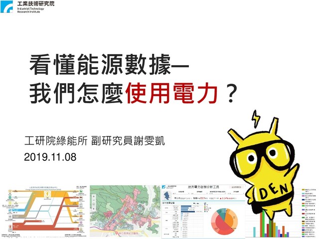 Copyright 2019 © ITRI 工業技術研究院 工研院綠能所 副研究員謝雯凱 2019.11.08 看懂能源數據─ 我們怎麼使用電力?
