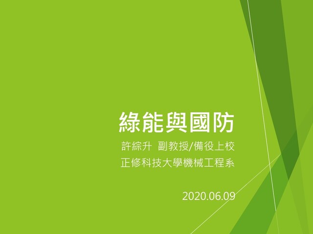 許綜升 副教授/備役上校 正修科技大學機械工程系 綠能與國防 2020.06.09