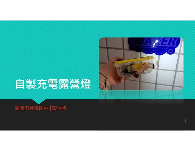 自製充電露營燈 自製充電露營燈 基隆市銘傳國中│蔡依帆 基隆市銘傳國中│蔡依帆 1