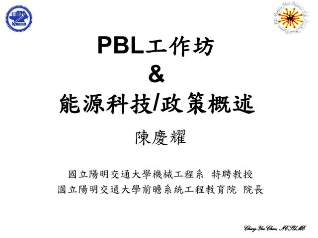 Ching-Yao Chen, NCTUME PBL工作坊 & 能源科技/政策概述 陳慶耀 國立陽明交通大學機械工程系 特聘教授 國立陽明交通大學前瞻系統工程教育院