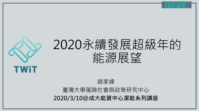 2020永續發展超級年的能源展望 - 趙家緯 博士