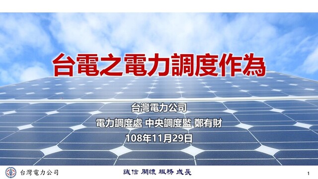 台灣電力公司 台電之電力調度作為 台灣電力公司 電力調度處 中央調度監 鄭有財 108年11月29日 1