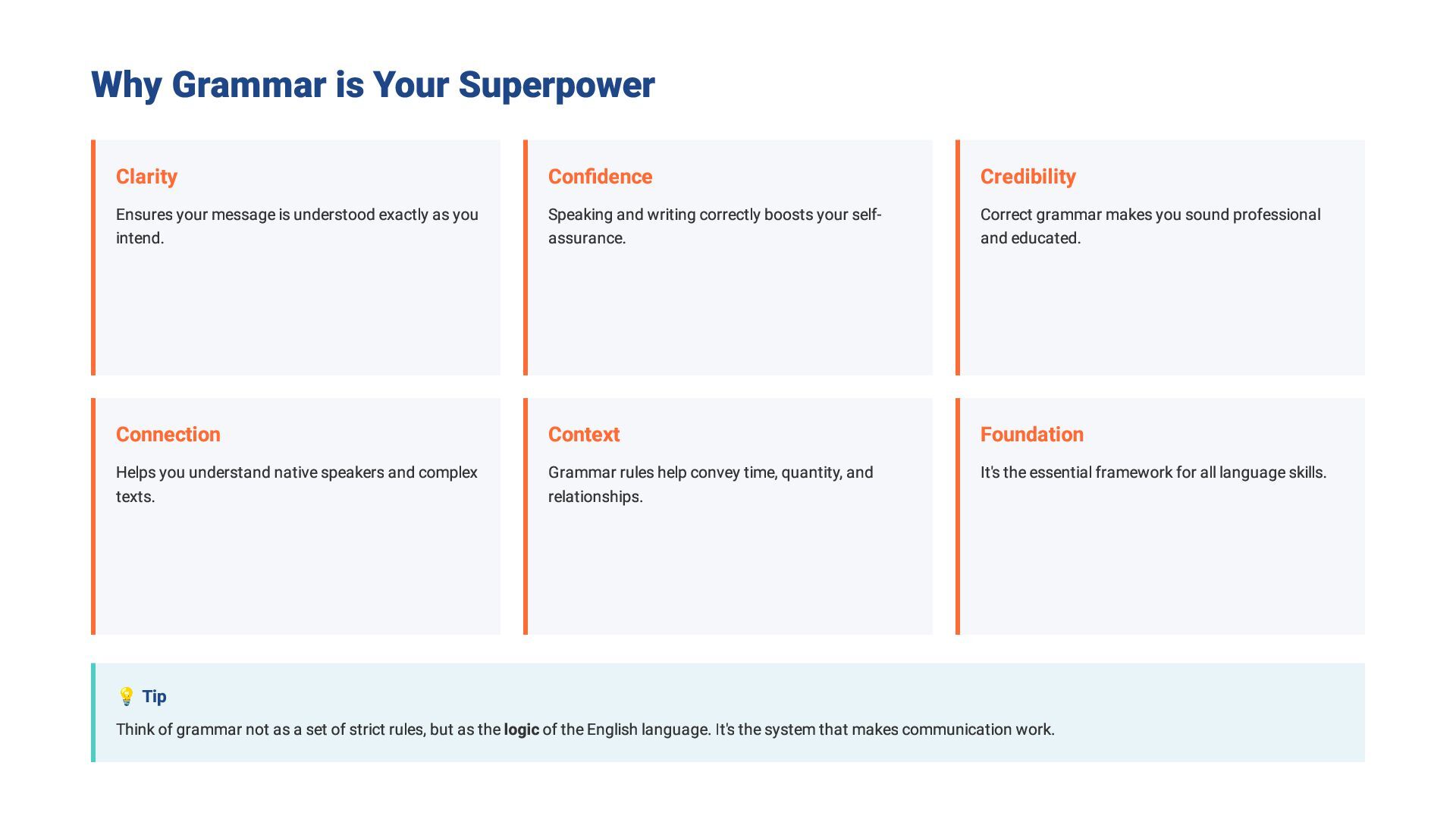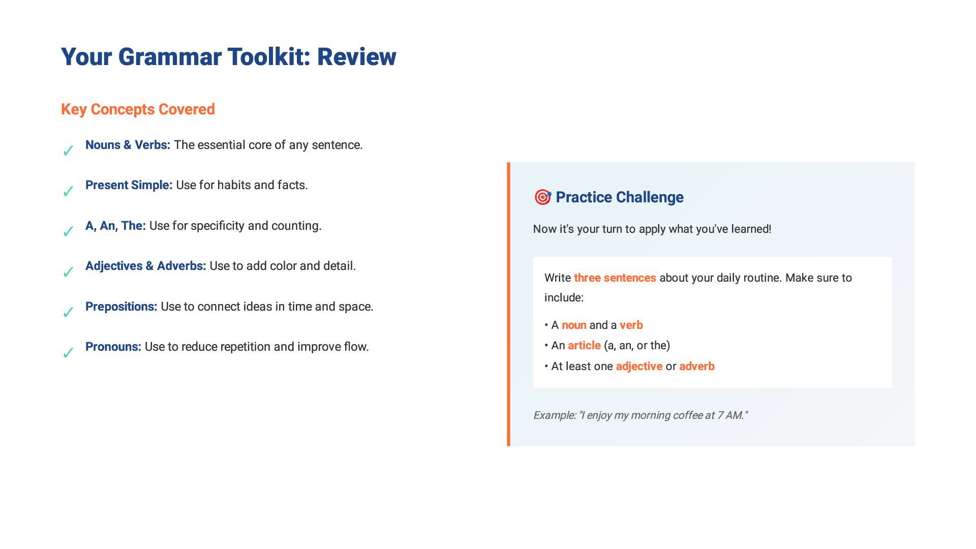 Whether you’re studying alone or with a teacher, this free lesson will help you build a strong grammar foundation that actually makes sense — one that helps you sound natural and clear in real conversations.