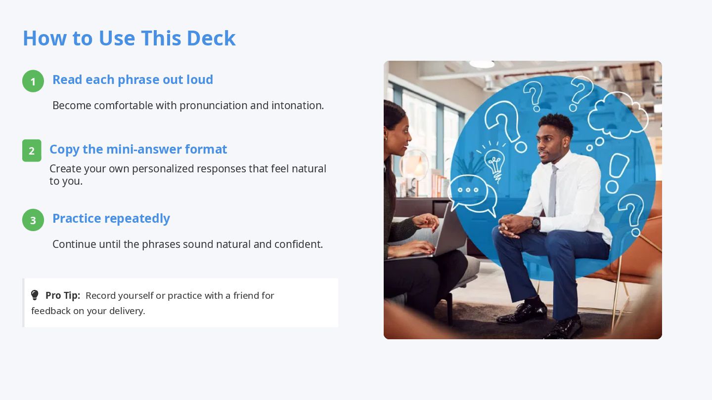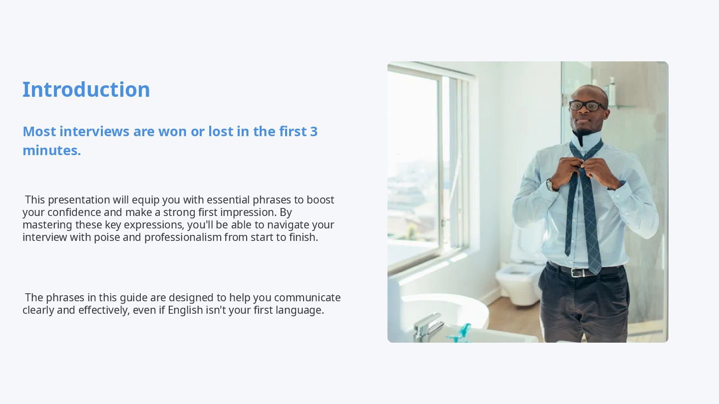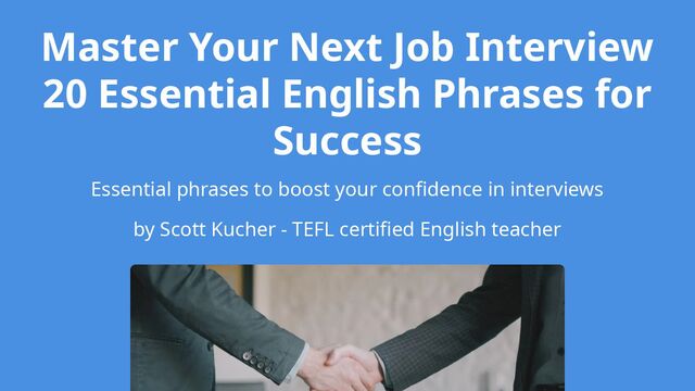 Job interviews in English can feel intimidating—but with the right language, you can sound confident and professional. This free ESL/TEFL lesson plan teaches essential English interview phrases for introductions, describing your skills, handling strengths and weaknesses, and asking smart questions. Includes sample answers, cultural tips, and practice strategies so you can prepare effectively. Perfect for English learners preparing for interviews and TEFL teachers looking for ready-made Business English materials. Practice these phrases daily to boost confidence, leave a strong impression, and succeed in your next job interview.