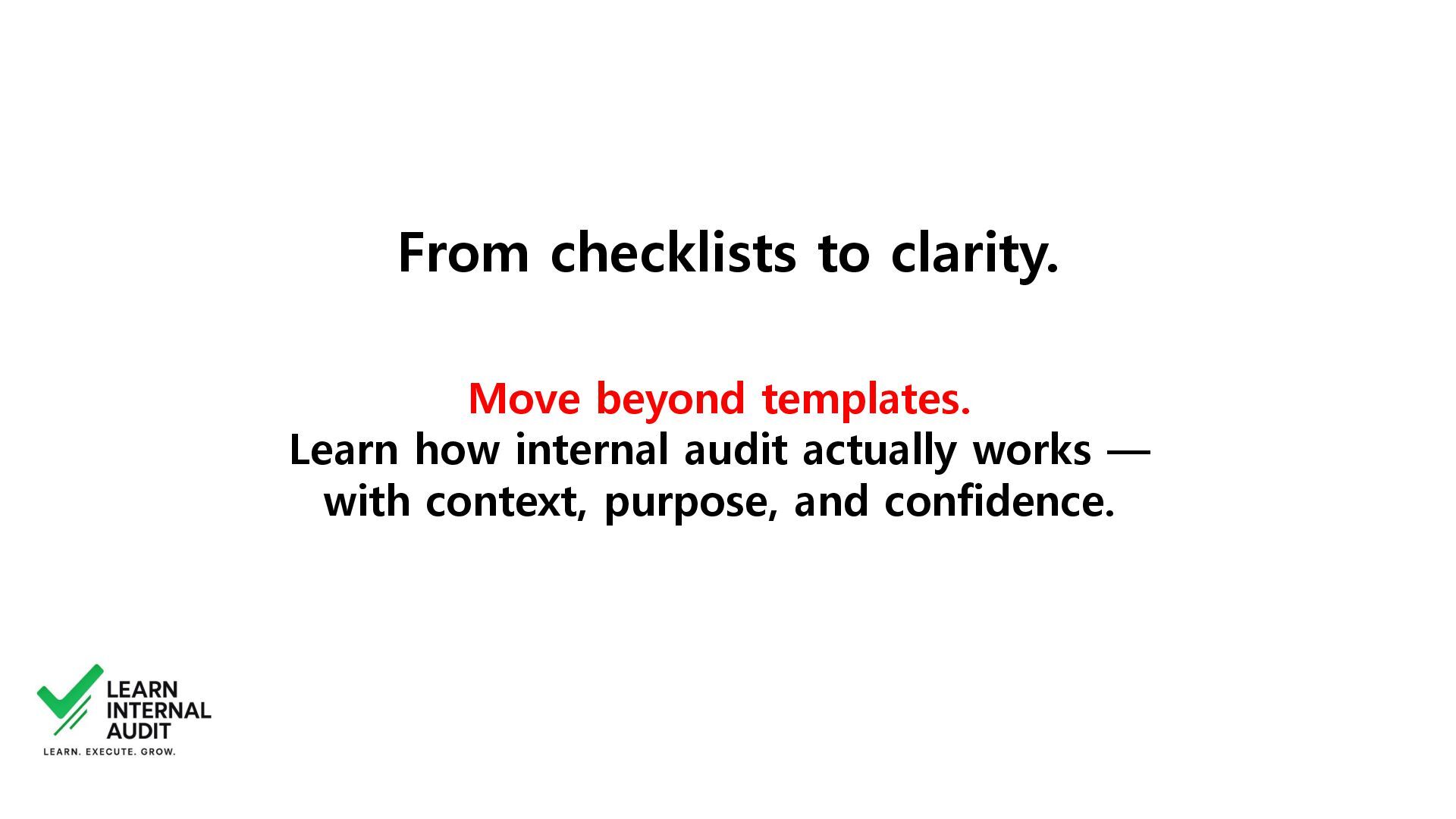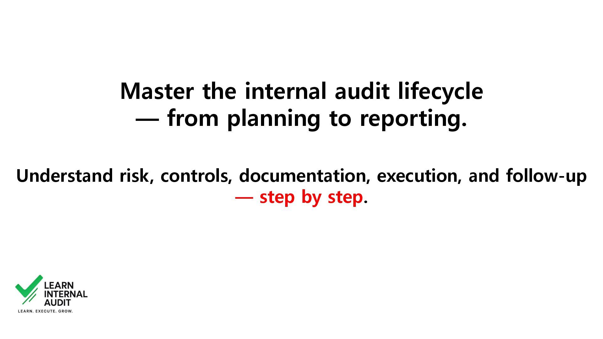 Whether you're new to the profession or looking to fill critical knowledge gaps, this course will help you move beyond templates and checklists to truly understand the why and how of internal audit.