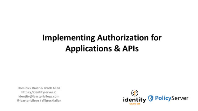 1. Implementing Authorization for Applications & APIs Dominick Baier & Brock