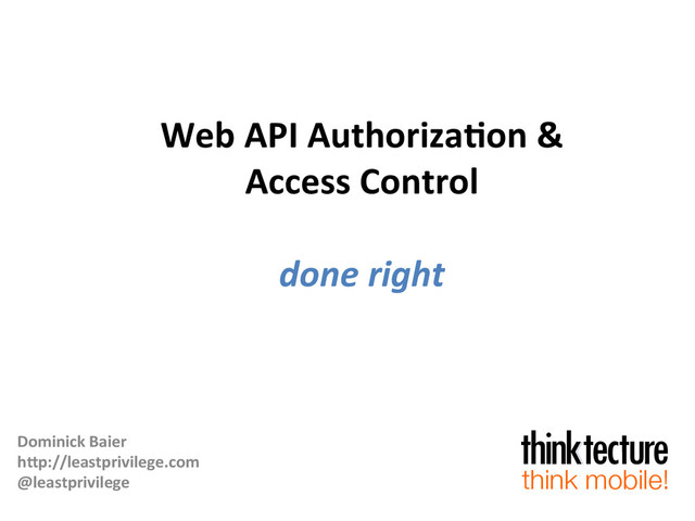 Authoriza0on Server Scopes: read, write, delete, search… client_id=client1, scope=search read access token access token { "iss": "myAuthzServer", "aud": "applica0on", "exp": 192990121, "sub": "Bob", "client_id": "client1", "scope": [ "search", "read" ] } Bob