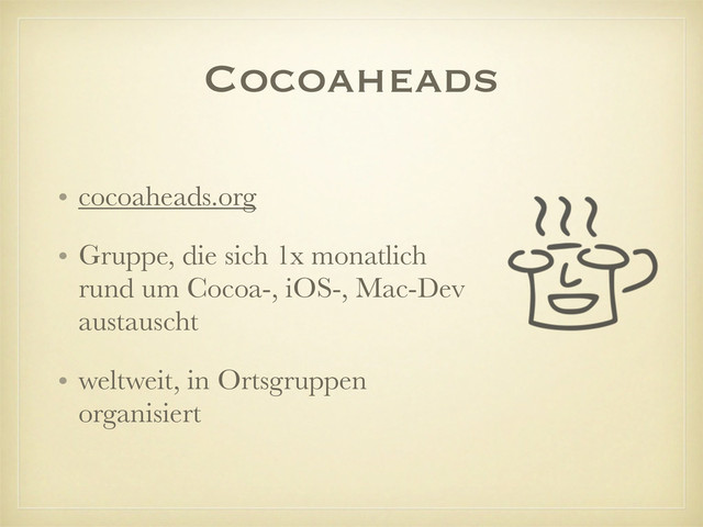 • ein paar Interessierte, die Leben reinbringen (4-5 Stammgäste als Minimum ist gutes Maß) • jeden 2. Donnerstag im Monat, 19-21 Uhr Ortszeit • immer ein Vortrag zu “irgendwas” etwa 45 Minuten • Danach freier Plausch • 21 Uhr zum Ende kommen, Termin für nächstes Treffen ankündigen “Rahmenvertrag”