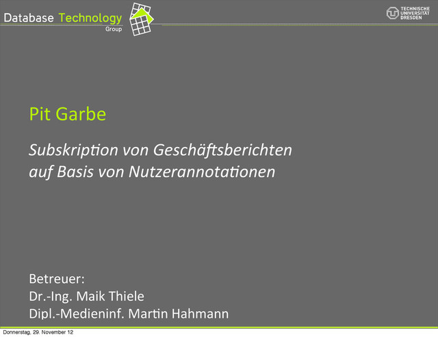 • anhand Nutzerinteressen Vorschläge interessanter Diagramme und Diskussionen geben
