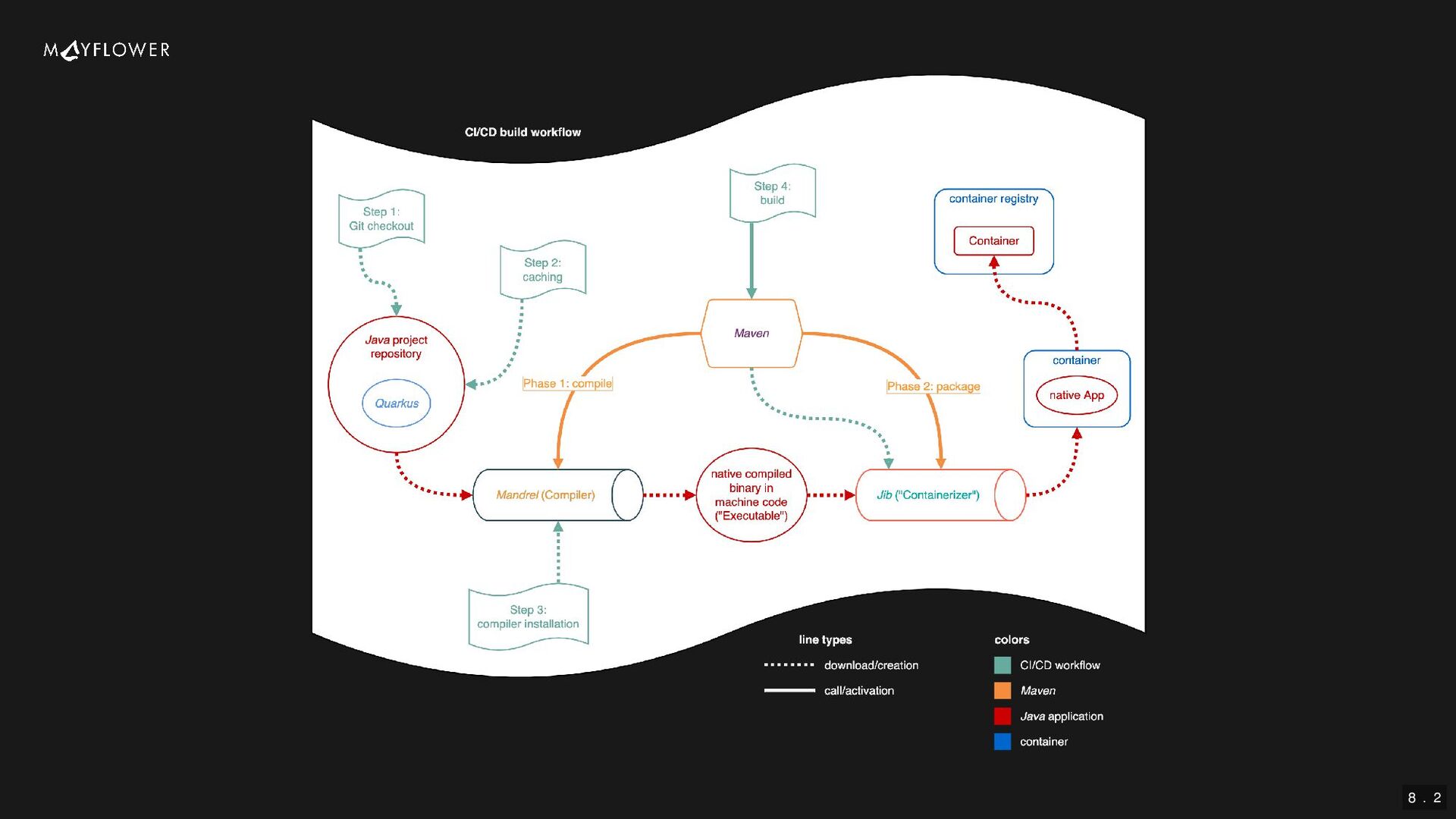 I’d like to offer a solution to the above-mentioned challenge. That is when the CDI framework Quarkus comes on the scene. It’s lightweight at first glance, and yet it has an enormous potential due to an exquisite collection of the best of breed libraries and standards. Additional components of this solution include Mandrel, which provides native Java builds, and Jib, which simplifies the build process. This results in a container image of your Java App being built and pushed to your container registry in one step.