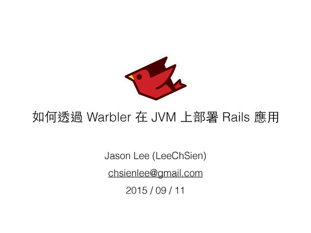 如何透過 Warbler 在 JVM 上部署 Rails 應⽤用 Jason Lee (LeeChSien)