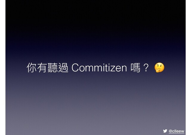 __position__ = [ "Software Engineer @ Rakuten Slice", "Volunteer @ PyCon Taiwan", "Maintainer of commitizen-tools", ] __twitter__ = " @clleew" __github__ = " Lee-W" __blog__ = " http://lee-w.github.io" •