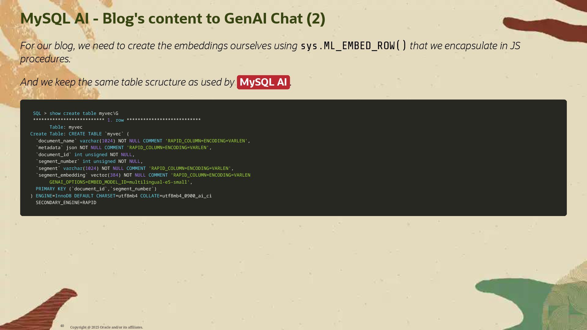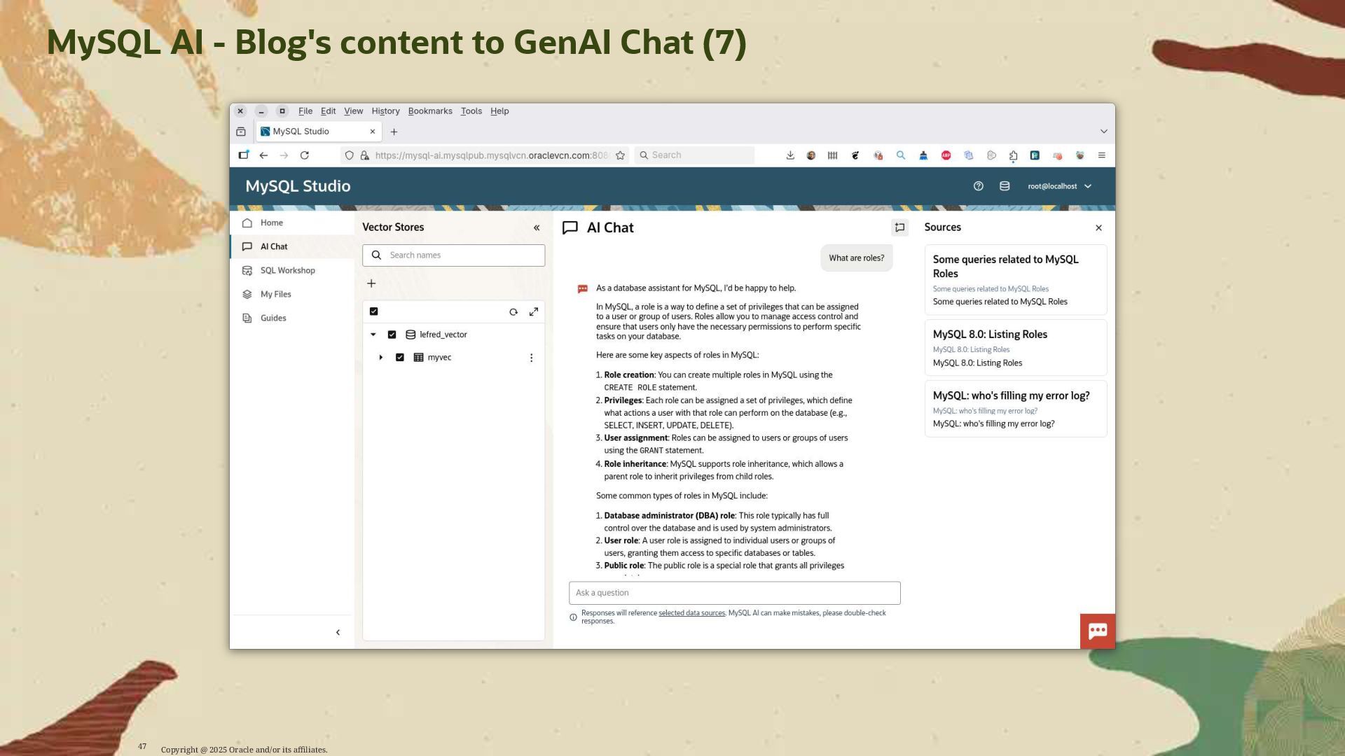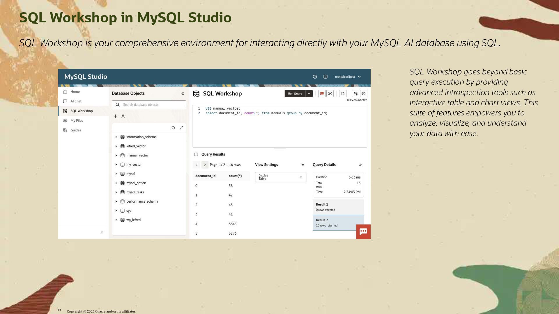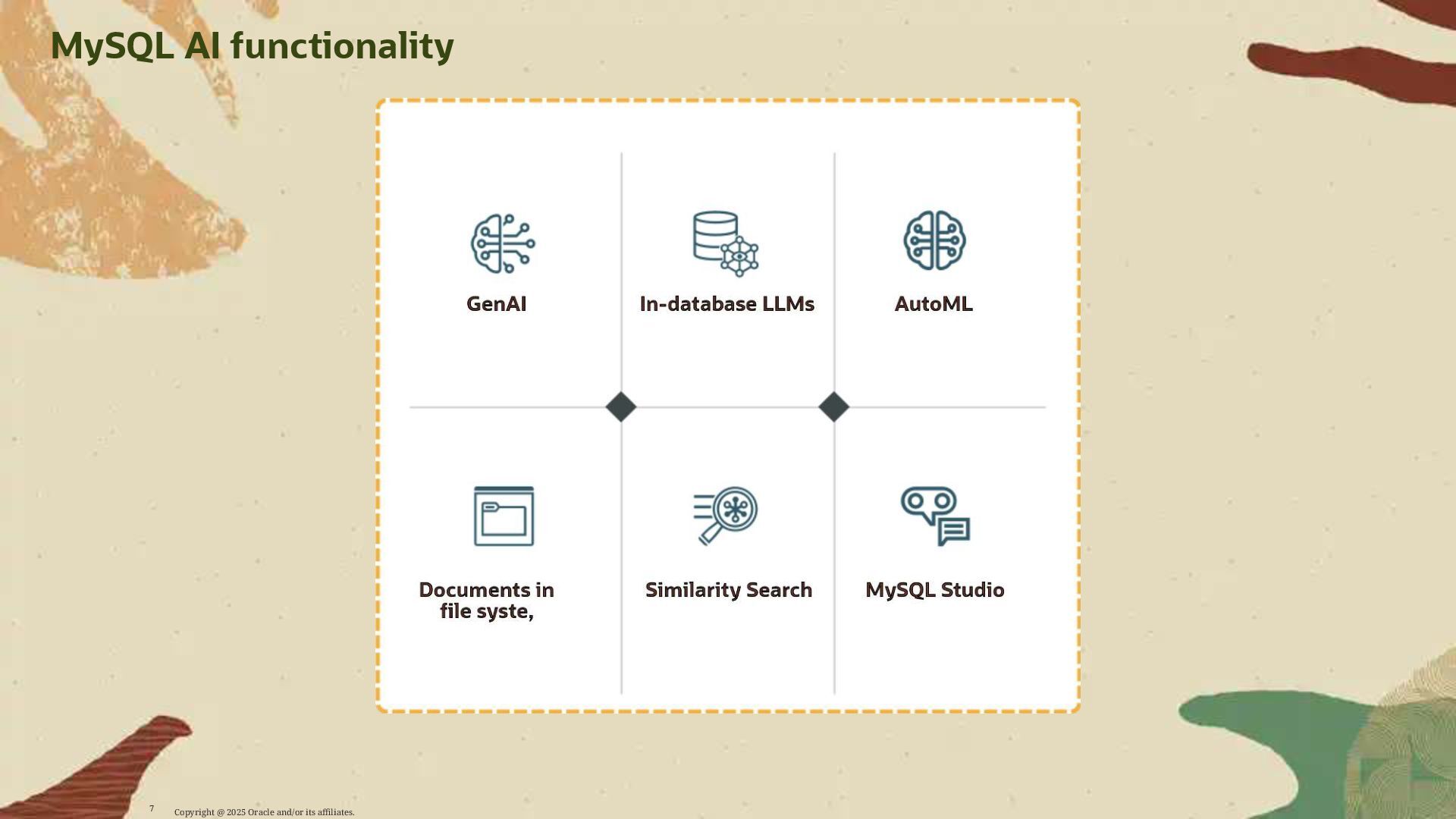 - Deploy AI-driven features — such as semantic search and contextual data enrichment — natively inside MySQL
